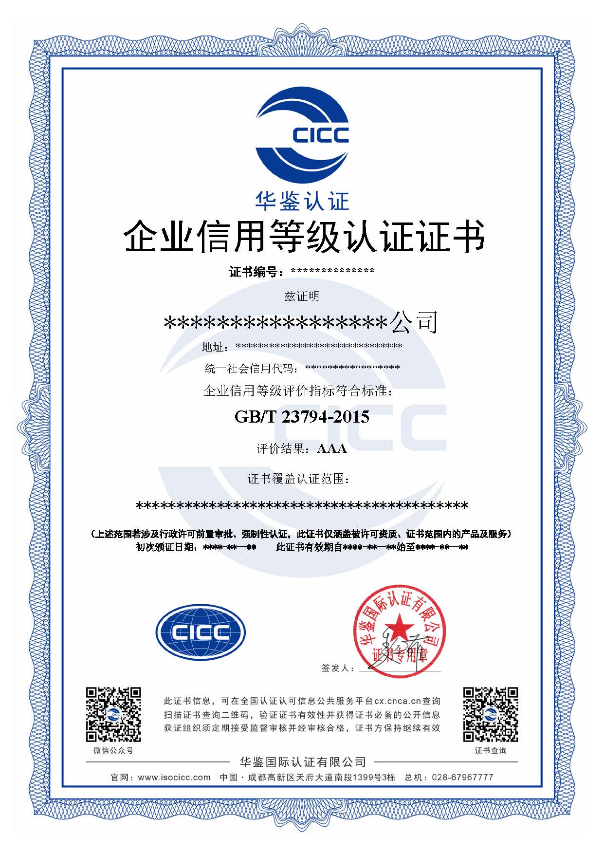 工业企业信用评级指标体系目前国内还没有统一起来,各个信用评级机构都有自己的一套做法,从银行系统来说,最早的要算中国工商银行调查信息部及中国农业银行信息部制定的《企业信用评估试行办法》和《企业信用等级评定试行办法》,以后有些地方政府还制定了有关信用评级管理的地方性法规。1992年全国信誉评级协会筹备组组织制定了《债券信用评级办法》和《企业信用评级办法》。关于企业信誉评级体系分为两大类和八个体系,其中工商企业类分为工业企业、商业企业、建筑安装企业和进出口企业等4个体系,金融机构类分为城市信用社、信托投资公司、保险公司和专业银行等4个体系。这套评级办法虽然当时没有公开发布,但对以后各地银行进行信用评级具有一定影响。照GB/T19001-2016与GB/T31863-2015标准进行测评认证。