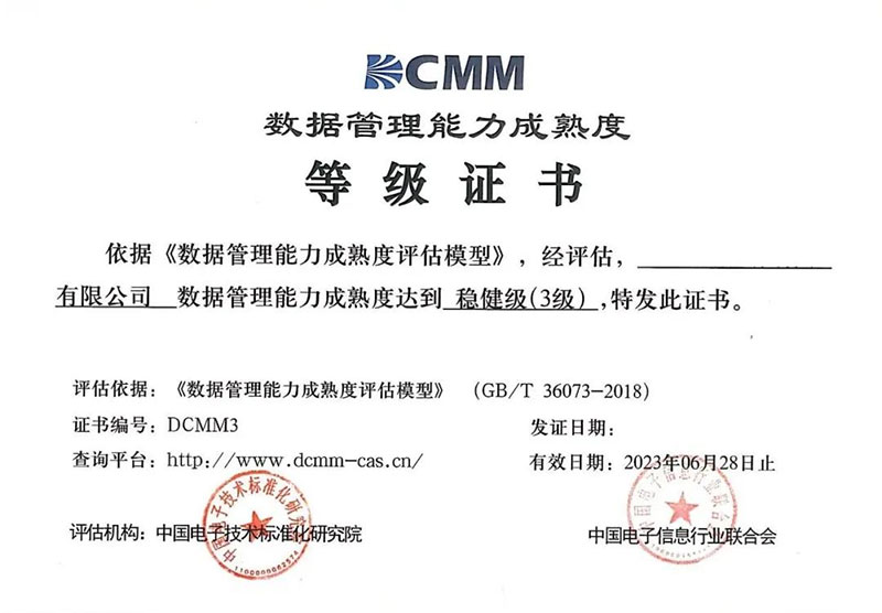 4.评估证书:颁发企业数据管理能力成熟度评估证书。