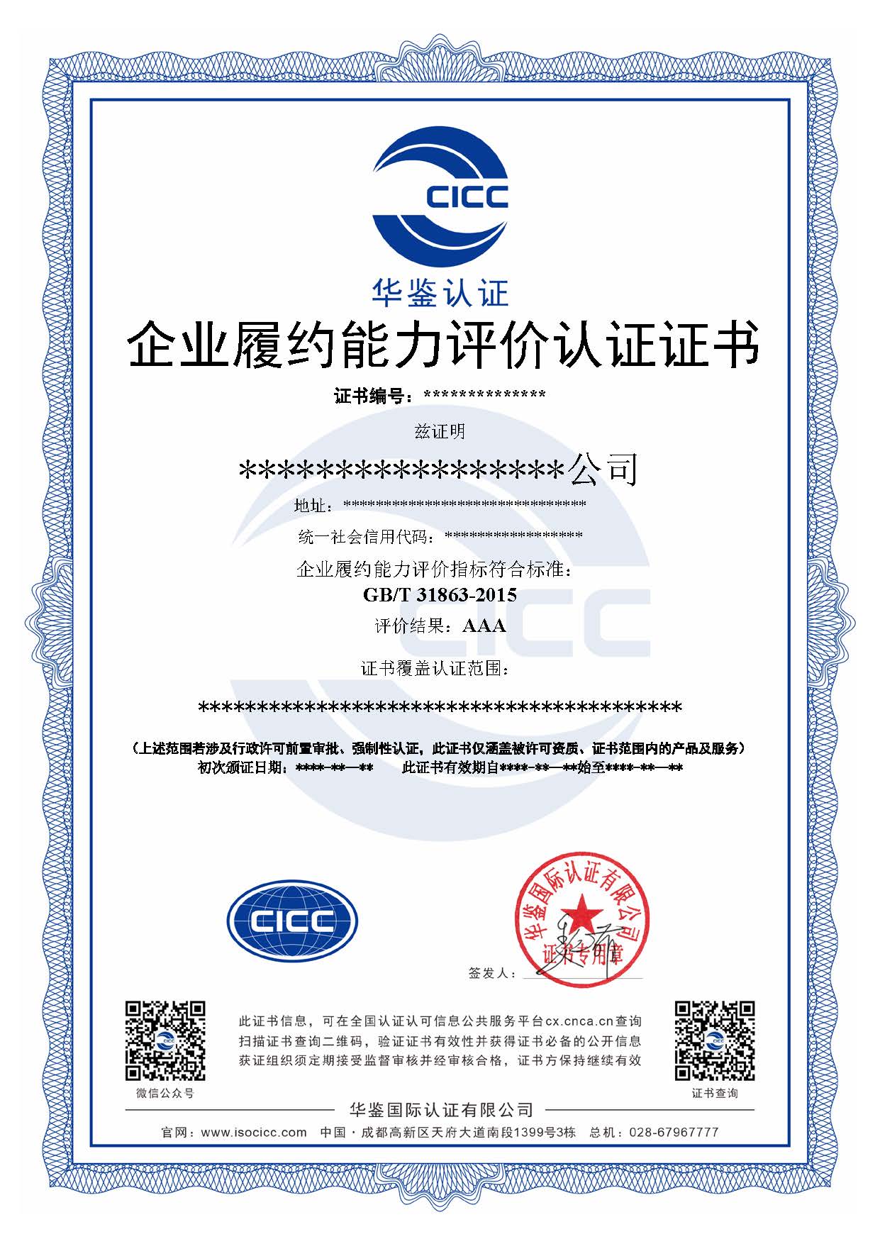 履约能力达标测评证书是按照GB/T31863-2015标准进行测评认证。