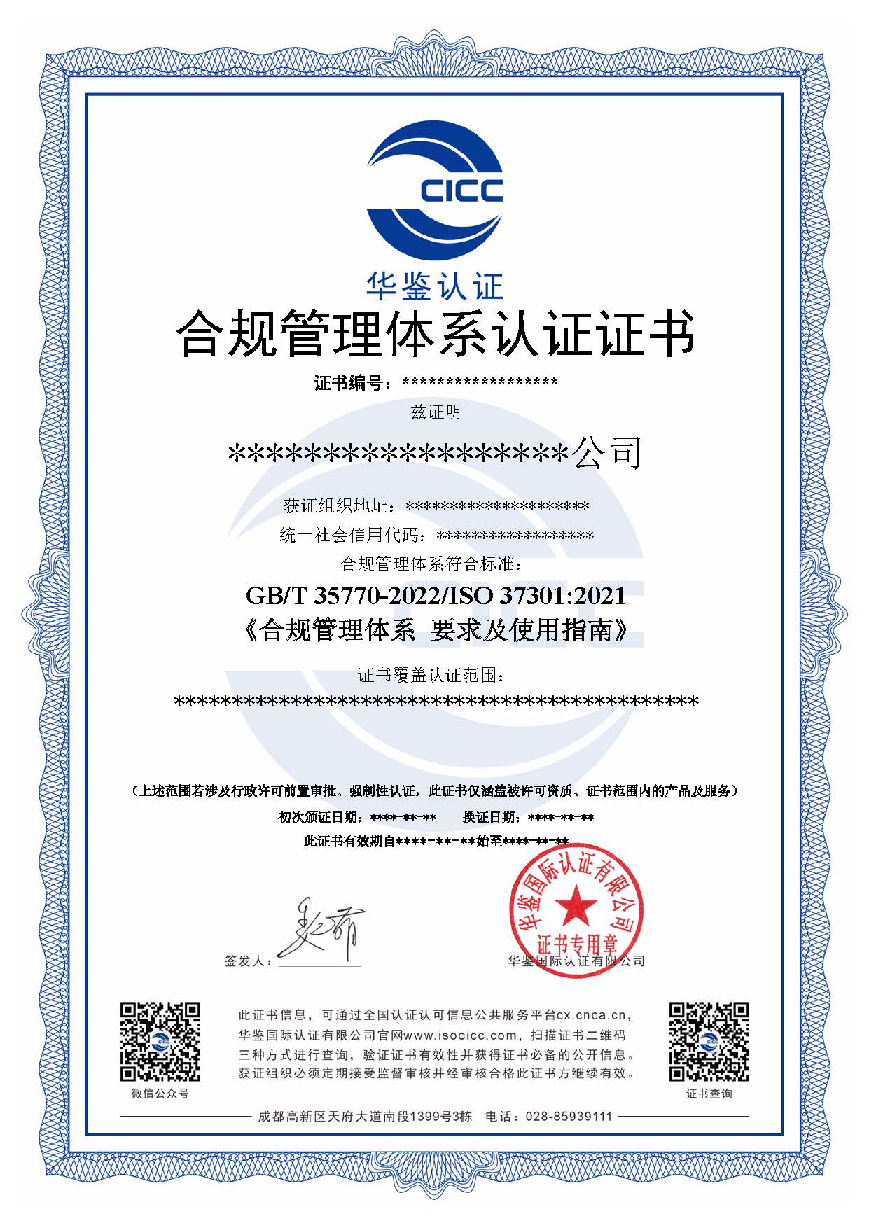 2.申请方应按照国际有效标准(GB/T 35770-2022/ISO 37301:2021)的要求在组织内建立管理体系,并实施运行至少3个月以上;