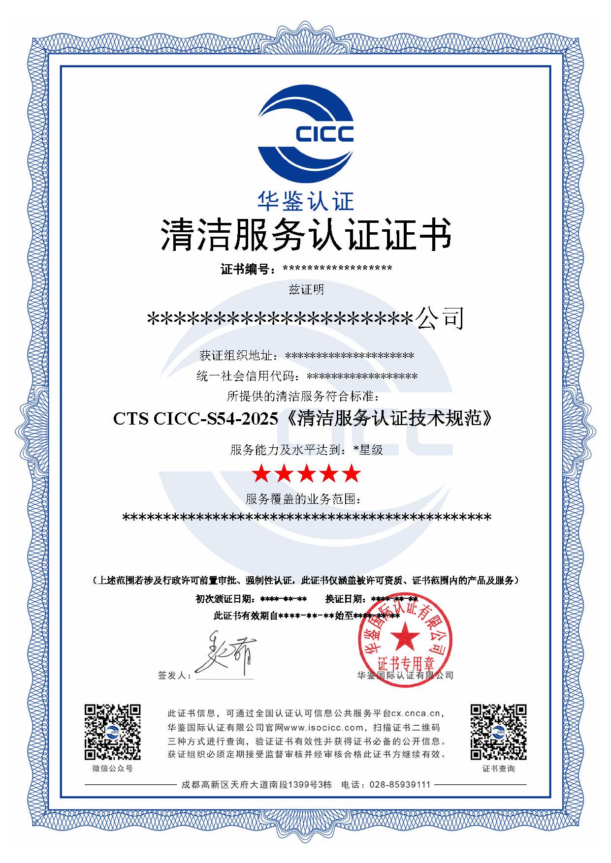 清洁行业经营服务认证通过采用CTS CICC-S54-2025《清洁服务认证技术规范》,对清洁行业经营服务质量进行综合评价,提高清洁行业的技术水平和项目管理水平,促进清洁行业的有序发展。清洁行业经营服务认证是服务认证的一种,与其他服务认证不同,清洁行业经营服务认证不做星级划分,发放统一的服务认证证书。