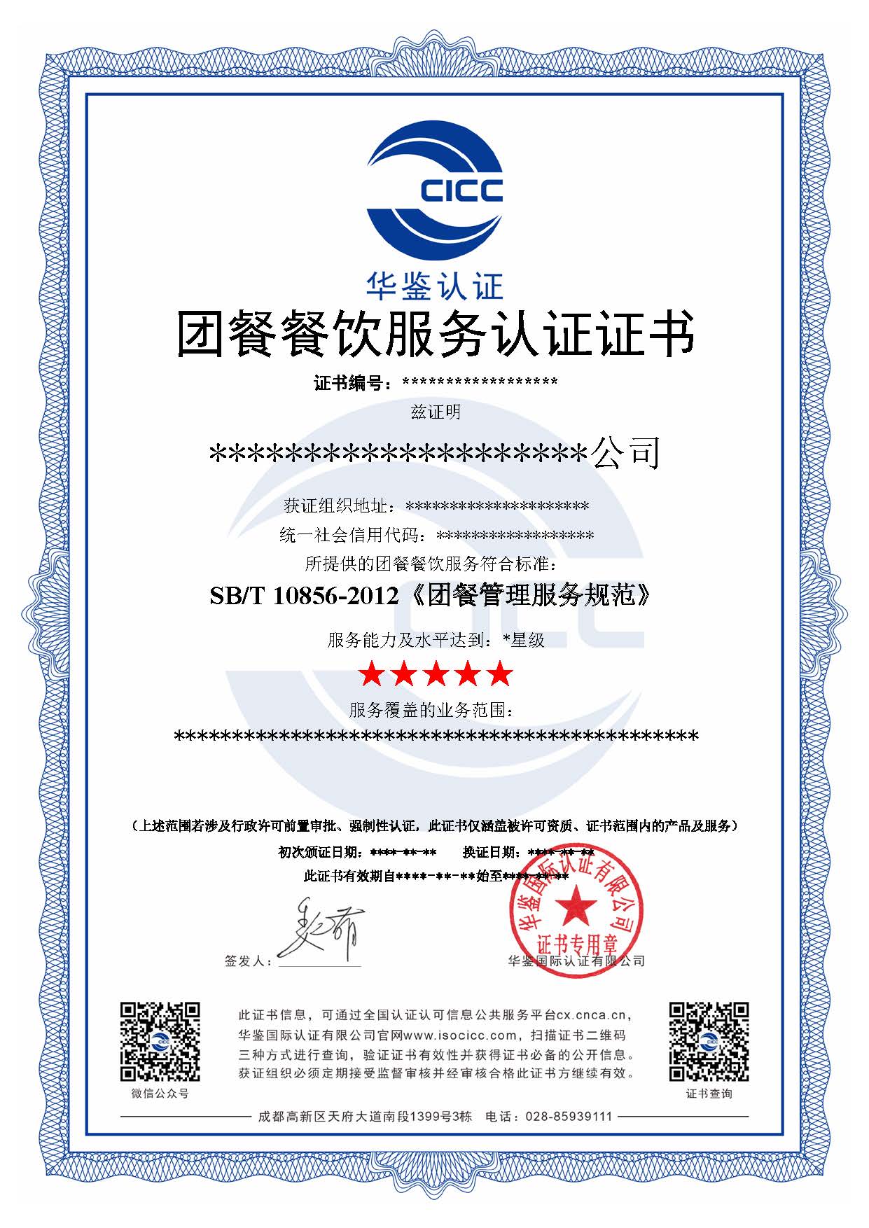 SB/T10856团餐餐饮服务认证