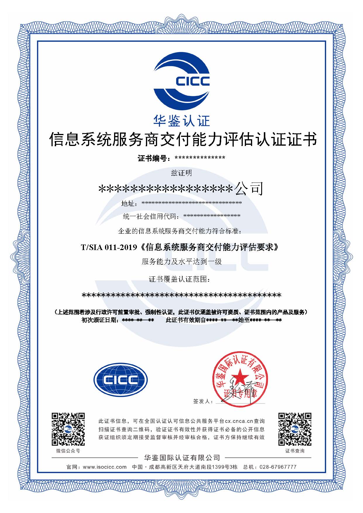 通过信息系统服务交付能力评估认证,以定量及性能力指标反映信息系统服务商交付能力,旨在提高信息技术服务供给质量。此服务认证可以作为政府机构、事业单位、社会团体等信息系统使用用户或招标中介机构选择信息系统服务商的评定和参考依据,同时也适用于信息系统服务商开展自我能力评价时使用。