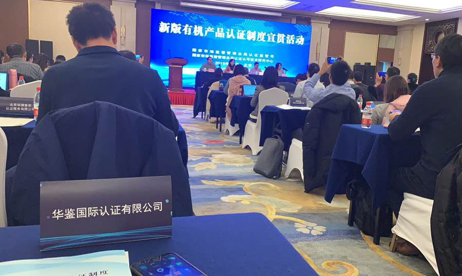为加强华鉴国际认证有限公司对于有机产品认证新版的贯彻学习,我司胡建英和张朝龙参与2019年12月23日-24日市场监督总局认证监管司组织的新版有机产品认证制度宣贯活动。
