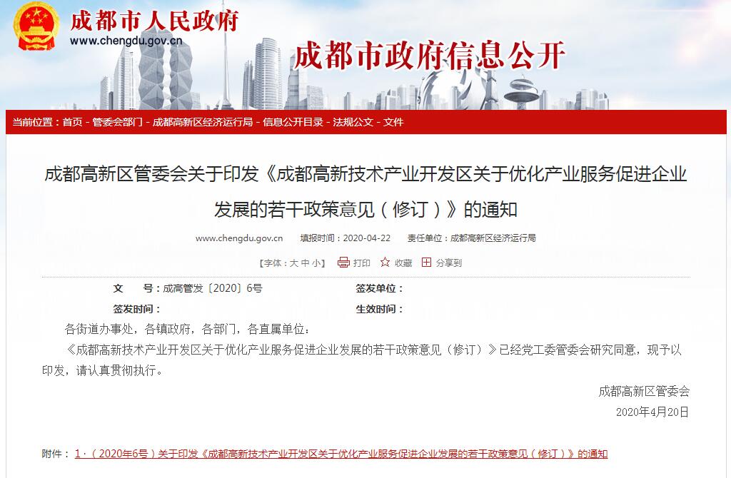 1.《成都高新技术产业开发区关于优化产业服务促进企业发展的若干政策意见(修订)》实施细则
