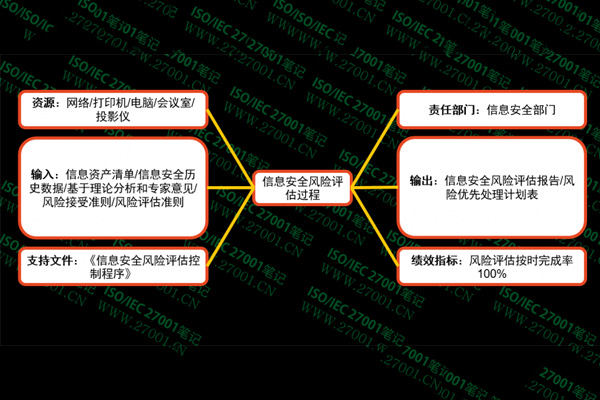 2、本条款要求组织建立信息安全风险评估过程,并且需要形成书面的程序文件。文件中需明确以下内容:a)风险接受准则;b)风险评估实施准则;c)风险识别过程;d)风险分析过程;e)风险级别确定过程等。