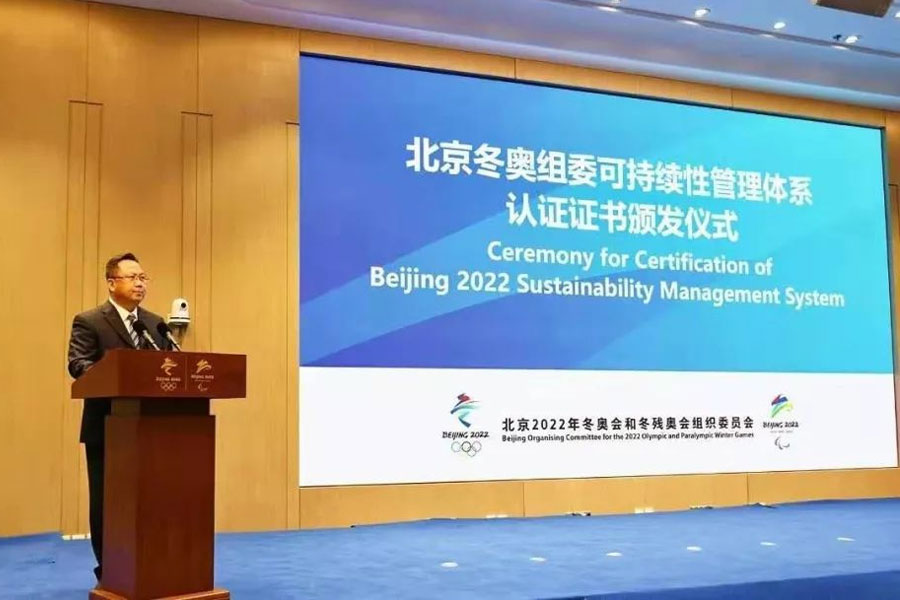 CNAS秘书长肖建华作为嘉宾出席北京冬奥组委可持续性管理体系认证证书颁发仪式