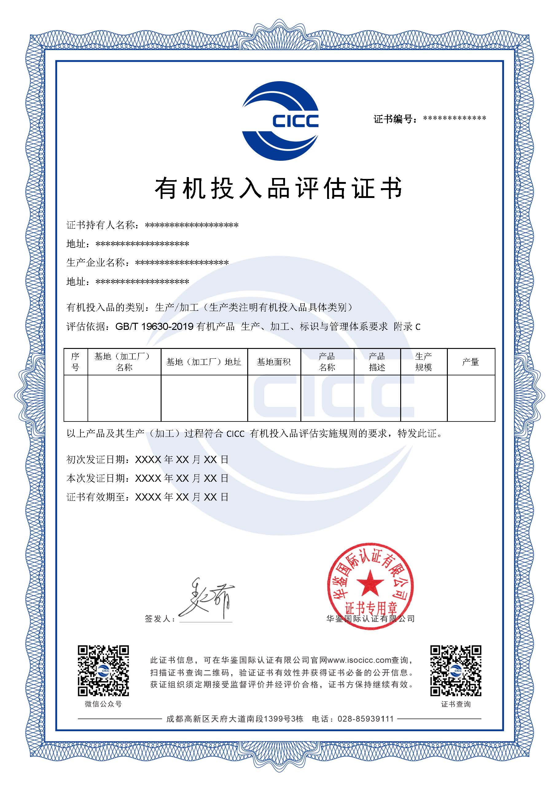 有机投入品评估证书有效期为1年,认证证书到期前3个月向我们提出再认证申请。