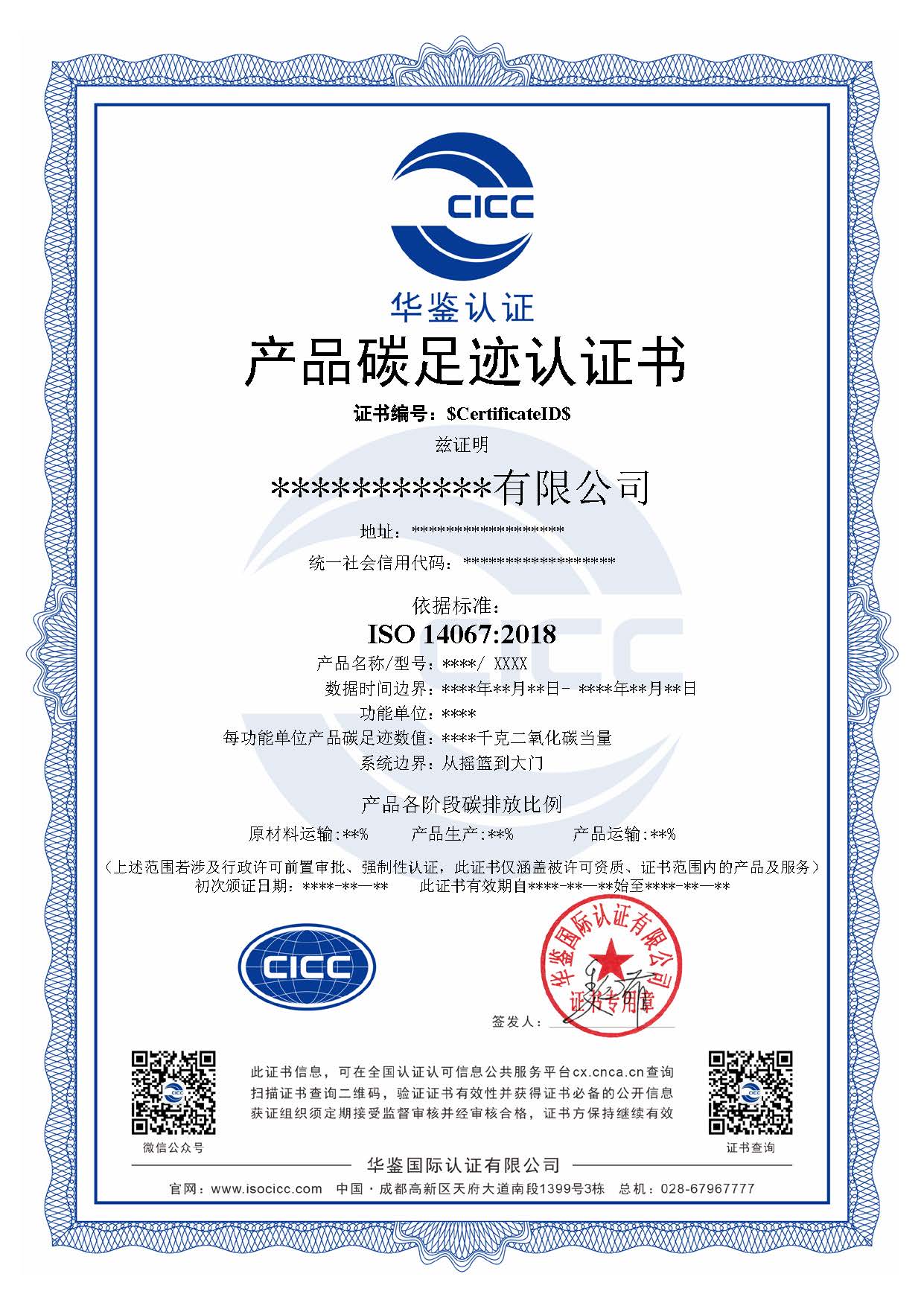 3.认证机构对申请进行审核,如通过,颁发产品碳足迹认证证书。