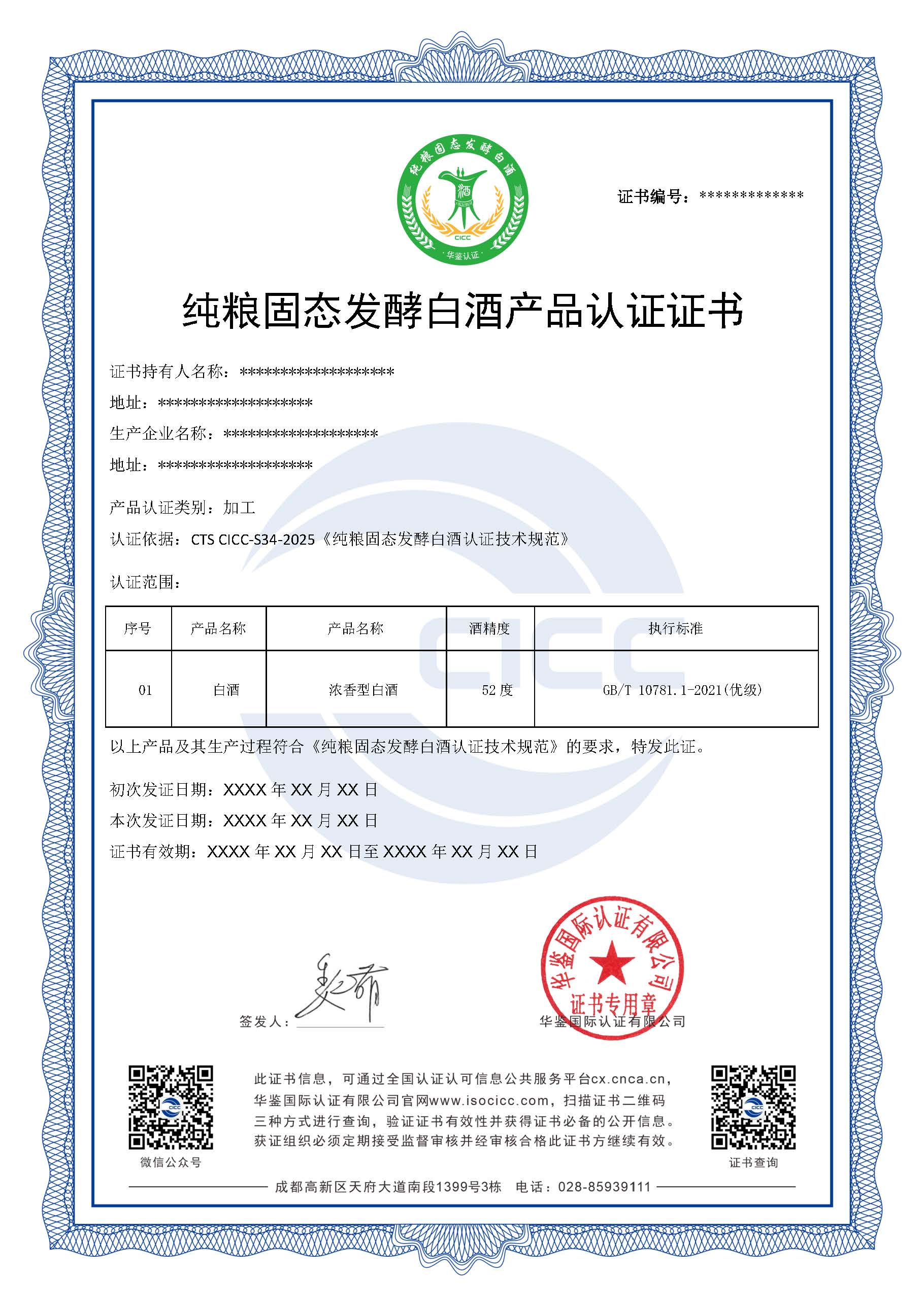 CTS CICC-S34纯粮固态发酵白酒产品认证