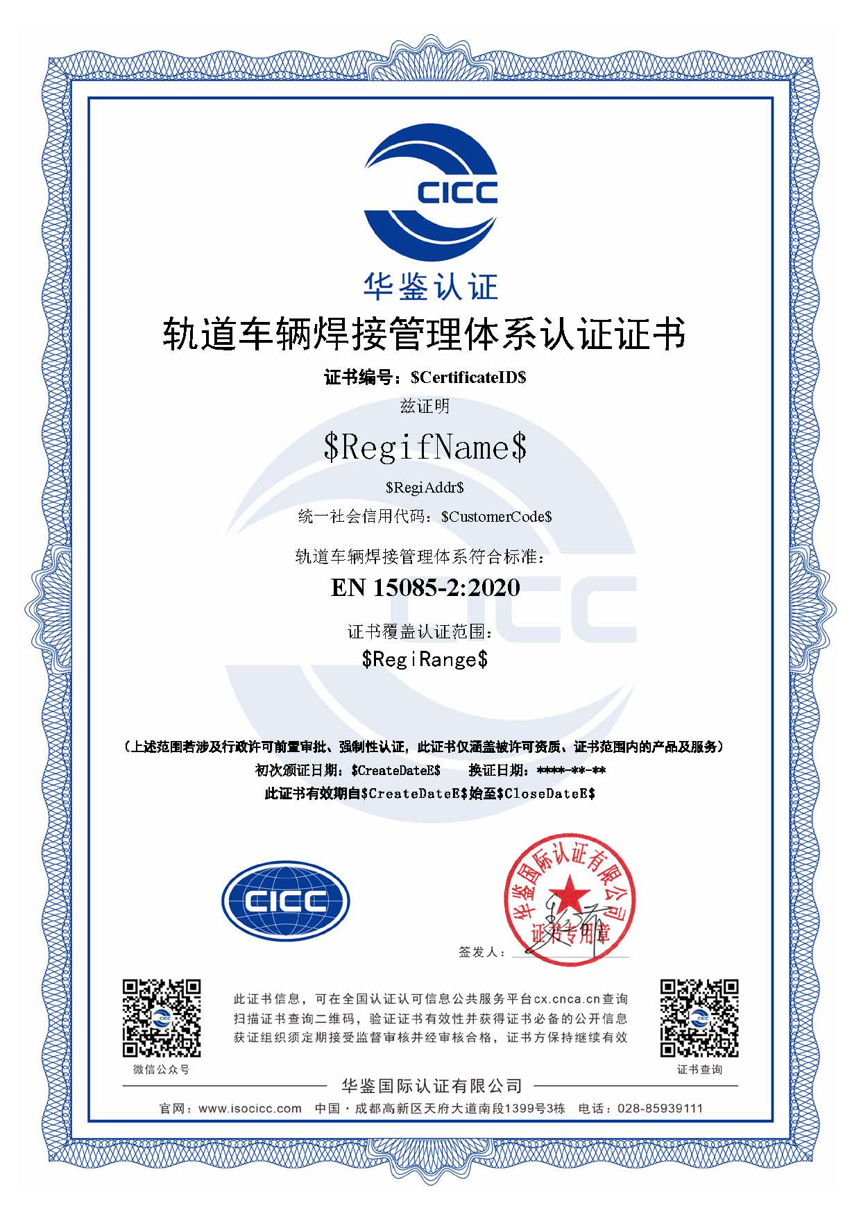 2.申请方应按照国际有效标准(EN 15085-2:2020)的要求在组织内建立管理体系,并实施运行至少3个月以上;