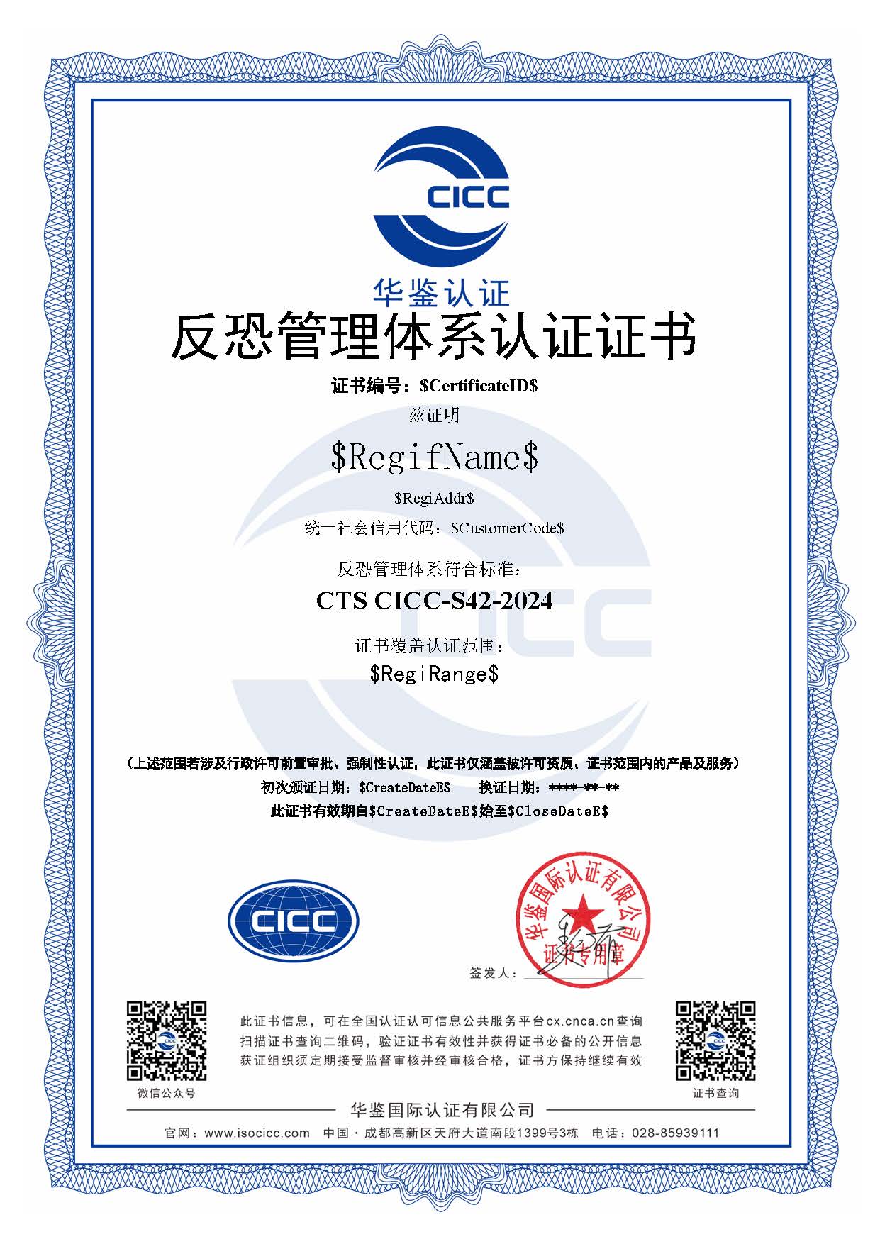 CTS CICC-S42反恐管理体系认证